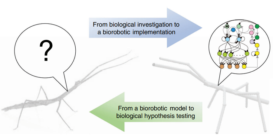 不过说到底,科学家们最关心的还是竹节虫是怎么驾驭这几条腿的。竹节虫并没有大脑,所以它的所有动作都是不经大脑的。这种不带脑子的行为有个清新脱俗的名字,叫去中心化适应性神经控制。