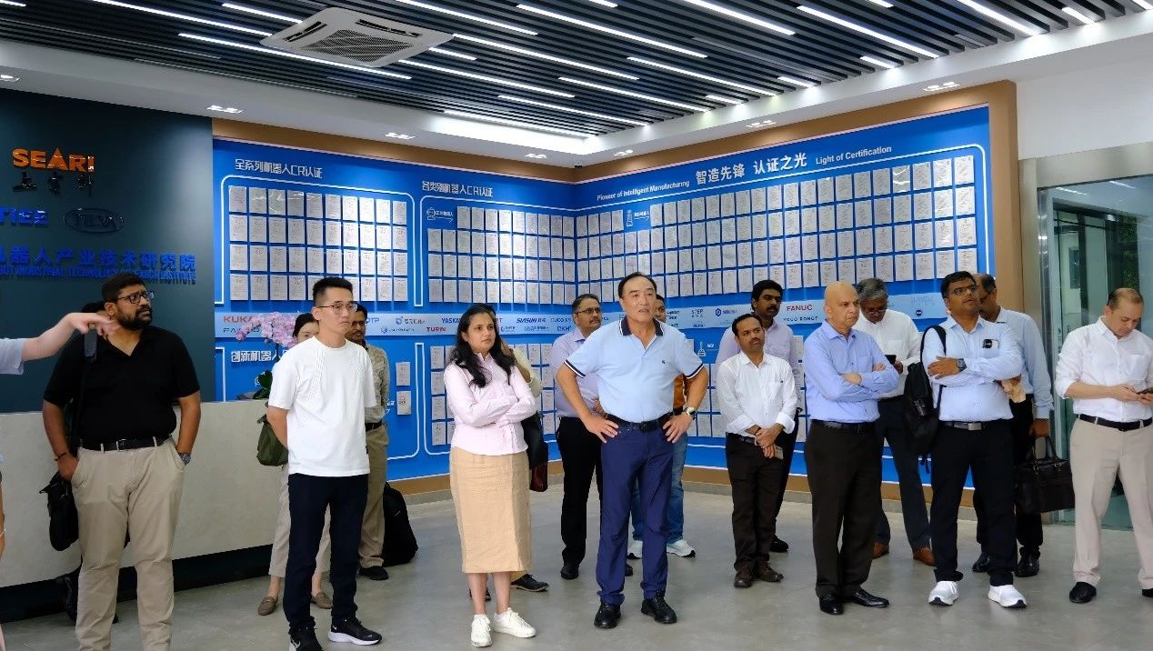 7月24日,印度塔塔集团(Tata Group)代表团一行到访米兰·(milan)中国有限公司官方网站(以下简称”上研院“),实地参观机器人检测试验室、智能创新研发实验室、具身智能机器人数据训练测评试验室,重点了解国家机器人检测与评定中心(总部)职能、行业标准制定与检测认证服务等工作进展,并就中国机器人认证(以下简称”CR认证”)体系及国际互认机制展开深入交流,上研院副院长周梅杰热情接待。
