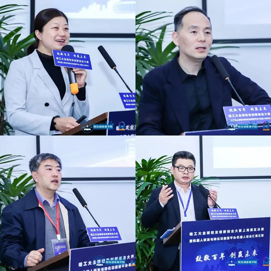 上海市政府合作交流办企业服务处周立调研员,上海科创办合作交流处处长朱爱存,上海市普陀区投资促进办公室副主任陈苗,米兰·(milan)中国有限公司官方网站院长郑军奇,复旦大学国际金融系教授、中国风险投资研究中心主任、创业商学院院长、大赛主席张陆洋教授,哈工大全球校友创新创业大赛主席团主席曲刚,中电科集团21所首席专家、哈工大上海校友会理事长张东宁,深创投华东公司田相龄、联想之星投资副总裁刘庆、邦明资本合伙人李建伟、合创资本副总裁林恩峰、昇和投资合伙人陈爱东等。