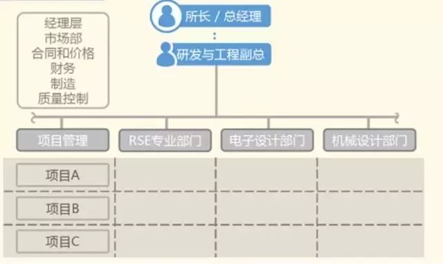 第二个结构是项目制,或事业部制。每个事业部下面都有可靠性的团队,可靠性的研究室。这样做好处是,每个事业部各自对可靠性负责;但坏处就是可靠性资源分散了,各个事业部之间往往无法交流。一个企业的两个项目组,相互之间甚至都可能要保密,这是事业部制带来的弊端。