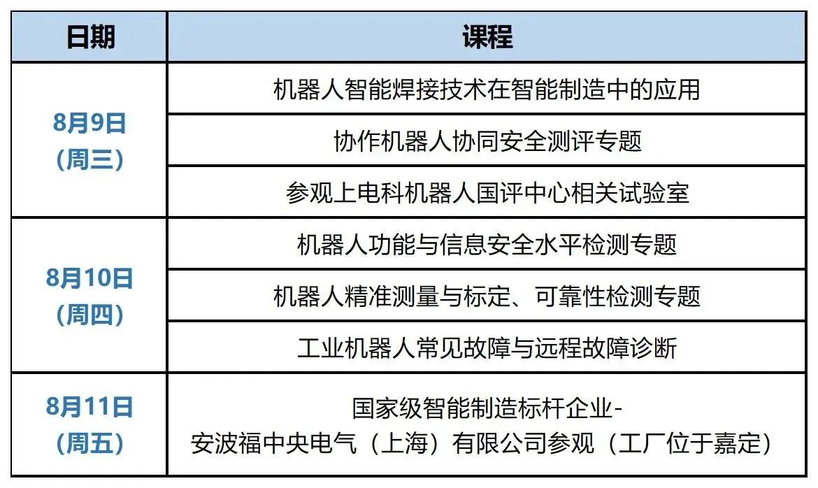 根据市人社局《上海市人力资源和社会保障局关于上海市专业技术人才知识更新工程 2023 年度高级研修项目(急需紧缺人才培养项目)计划的通知》(沪人社专〔2023〕130号)的要求,由上海电器科学研究所(集团)有限公司(国家机器人检测与评定中心[总部])指导,子公司上海添唯教育科技有限公司主办的专业技术人才知识更新工程高级研修项目“机器人质量提升”将于8月举办,相关事宜计划如下: