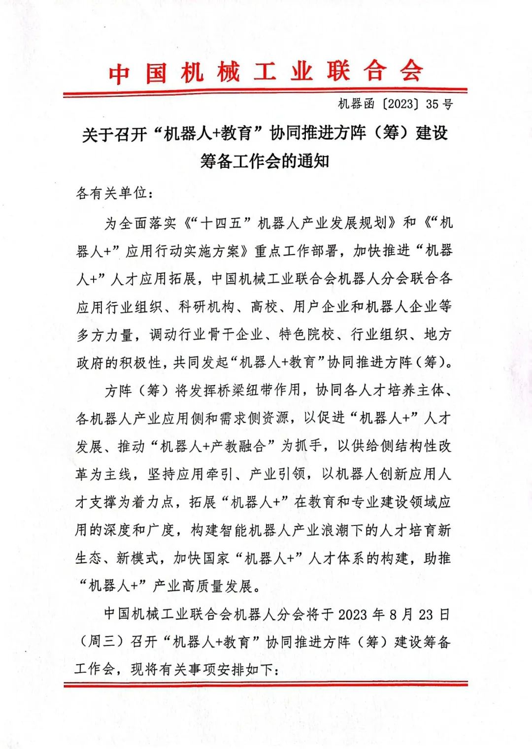 关于召开“机器人+教育”协同推进方阵(筹)建设筹备工作会的通知